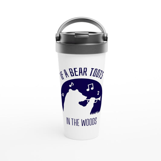 If A Bear Toots In The Woods, Trumpet Player - White 15oz Stainless Steel Travel Mug If A Bear Toots In The Woods, Trumpet Player - White 15oz Stainless Steel Travel Mug