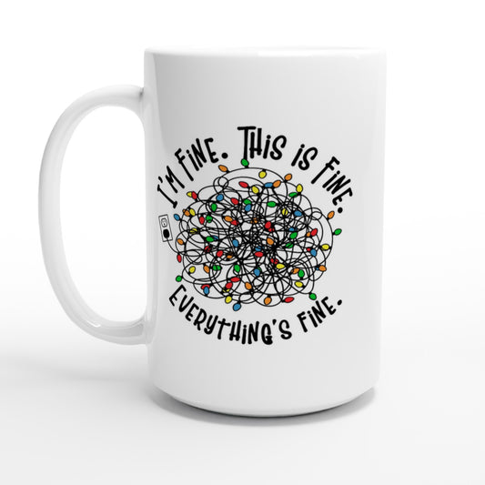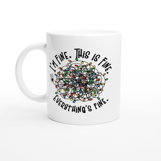 Tangled Christmas Lights, I'm Fine, This Is Fine, Everything's Fine - White 11oz Ceramic Mug with Colour Inside Tangled Christmas Lights, I'm Fine, This Is Fine, Everything's Fine - White 11oz Ceramic Mug with Colour Inside