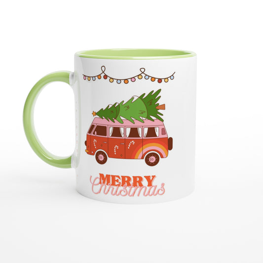 Christmas Tree On Peace Van - White 11oz Ceramic Mug with Colour Inside Christmas Tree On Peace Van - White 11oz Ceramic Mug with Colour Inside
