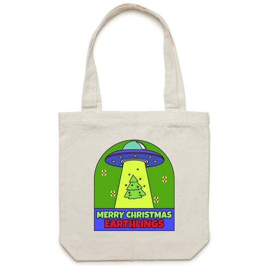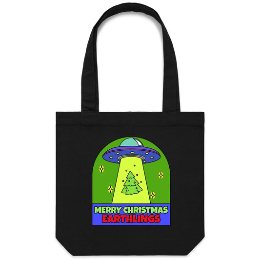 Merry Christmas Earthlings, UFO - Canvas Tote Bag