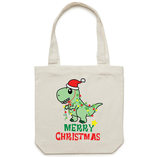 Dinosaur Santa, Merry Christmas - Canvas Tote Bag