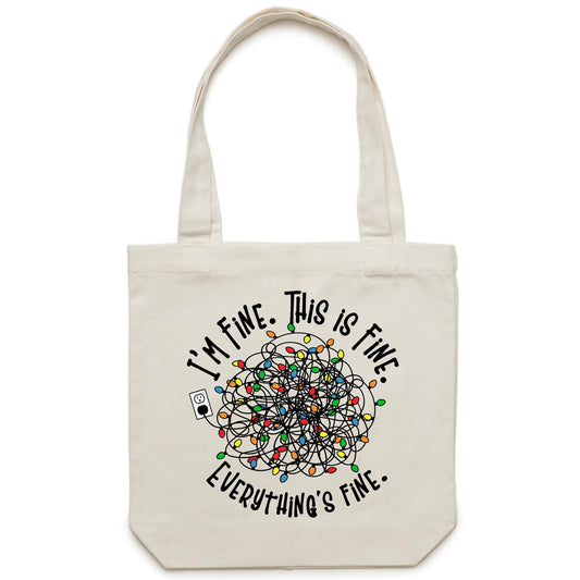 Tangled Christmas Lights, I'm Fine, This Is Fine, Everything's Fine - Canvas Tote Bag Tangled Christmas Lights, I'm Fine, This Is Fine, Everything's Fine - Canvas Tote Bag