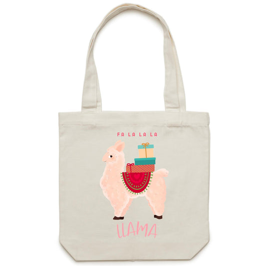 Fa La La La Llama, Christmas - Canvas Tote Bag