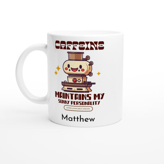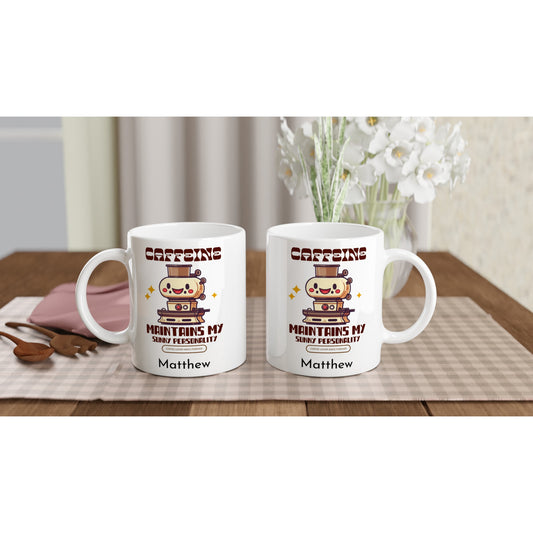 Personalised - Addicted To Coffee - White 11oz Ceramic Mug with Colour Inside Personalised - Addicted To Coffee - White 11oz Ceramic Mug with Colour Inside