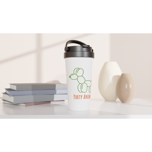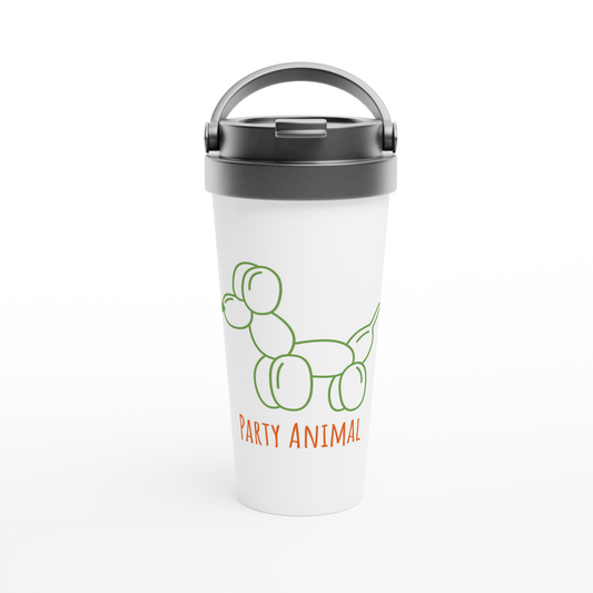 Party Animal - White 15oz Stainless Steel Travel Mug Party Animal - White 15oz Stainless Steel Travel Mug