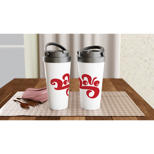 Love The Planet - White 15oz Stainless Steel Travel Mug Love The Planet - White 15oz Stainless Steel Travel Mug