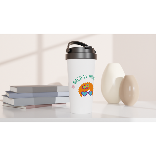 Keep It groovy - White 15oz Stainless Steel Travel Mug Keep It groovy - White 15oz Stainless Steel Travel Mug