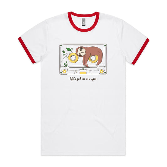 Life's Got Me In A Spin, Sloth, Cassette Tape - Staple Ringer Tee Life's Got Me In A Spin, Sloth, Cassette Tape - Staple Ringer Tee