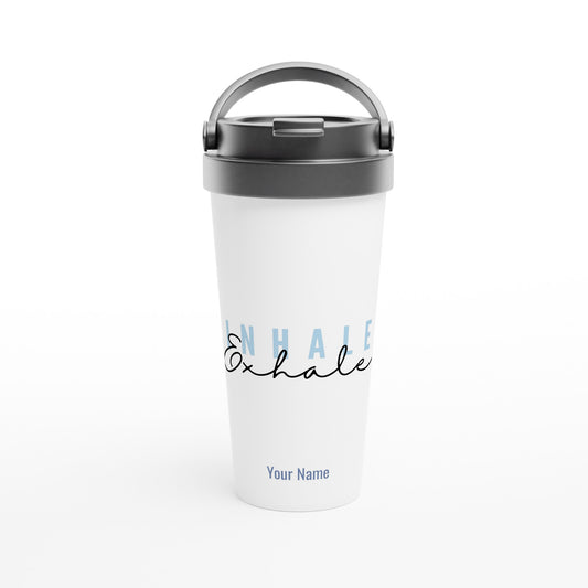 Personalised - Inhale, Exhale - White 15oz Stainless Steel Travel Mug Personalised - Inhale, Exhale - White 15oz Stainless Steel Travel Mug
