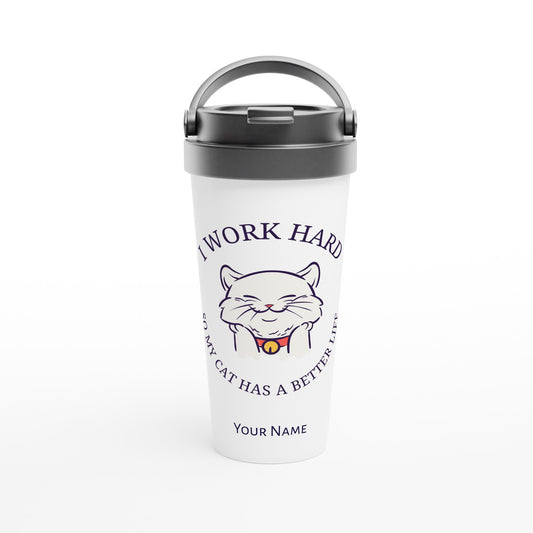 Personalise - Don't Rush Me, Cat - White 15oz Stainless Steel Travel Mug Personalise - Don't Rush Me, Cat - White 15oz Stainless Steel Travel Mug