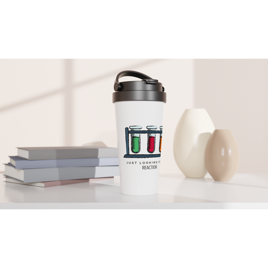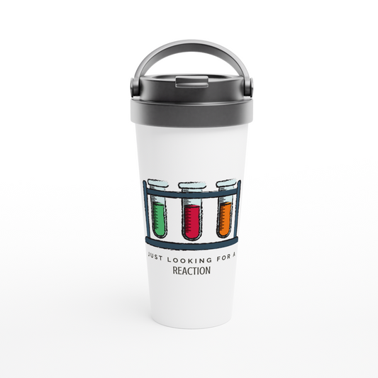 Test Tubes, Just Looking For A Reaction - White 15oz Stainless Steel Travel Mug Test Tubes, Just Looking For A Reaction - White 15oz Stainless Steel Travel Mug
