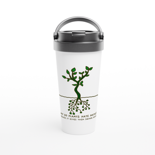Square Roots - White 15oz Stainless Steel Travel Mug Square Roots - White 15oz Stainless Steel Travel Mug