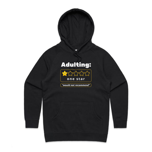 Adulting, One Star, Would Not Recommend - Womens Hoodie Adulting, One Star, Would Not Recommend - Womens Hoodie