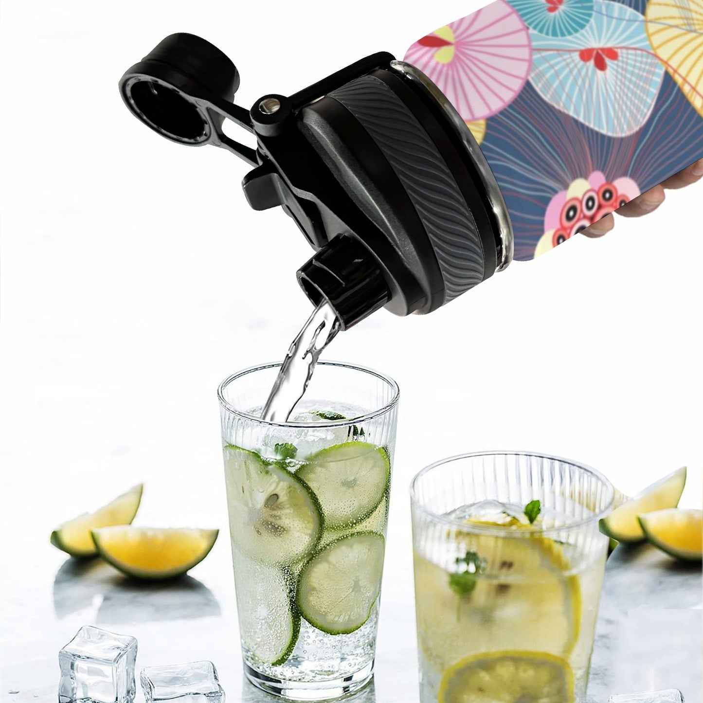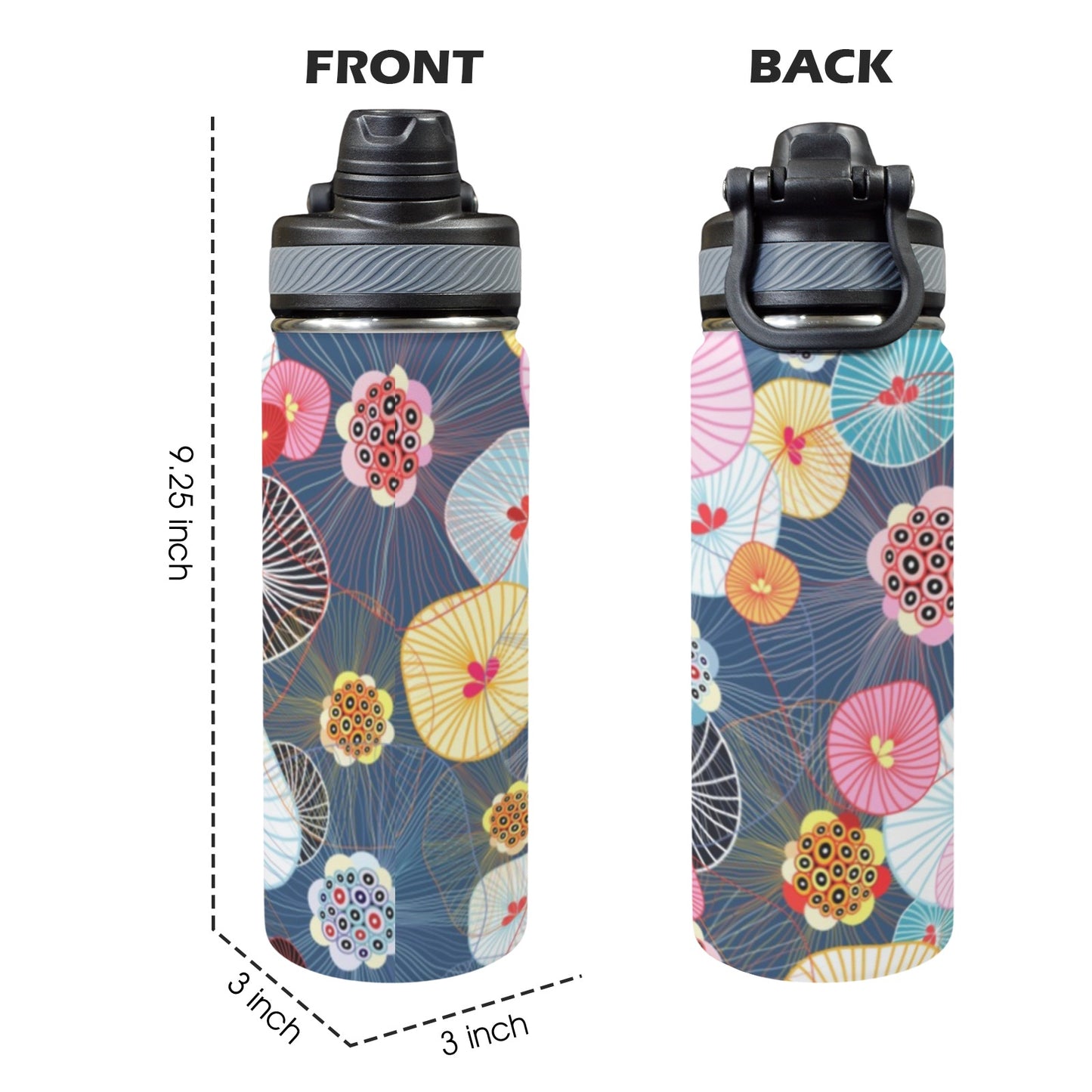 Abstract Floral - Insulated Water Bottle with Dual-Use Lid (18oz)