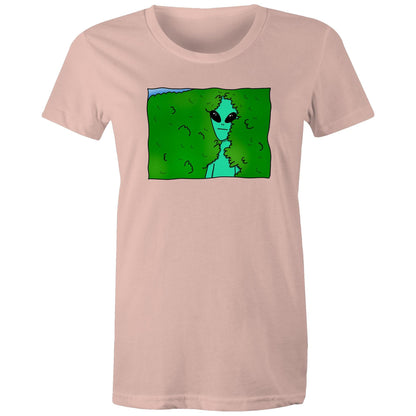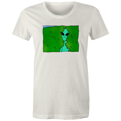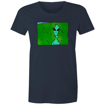 Alien Backing Into Hedge Meme - Womens T-shirt
