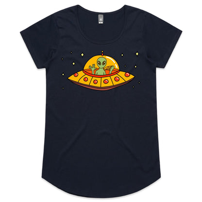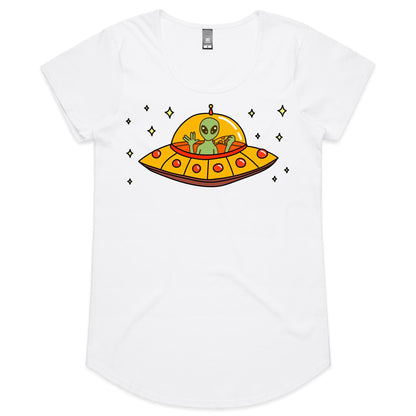 Alien Pizza, UFO - Womens Scoop Neck T-Shirt