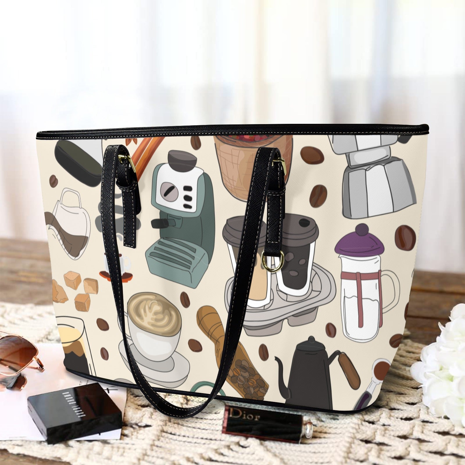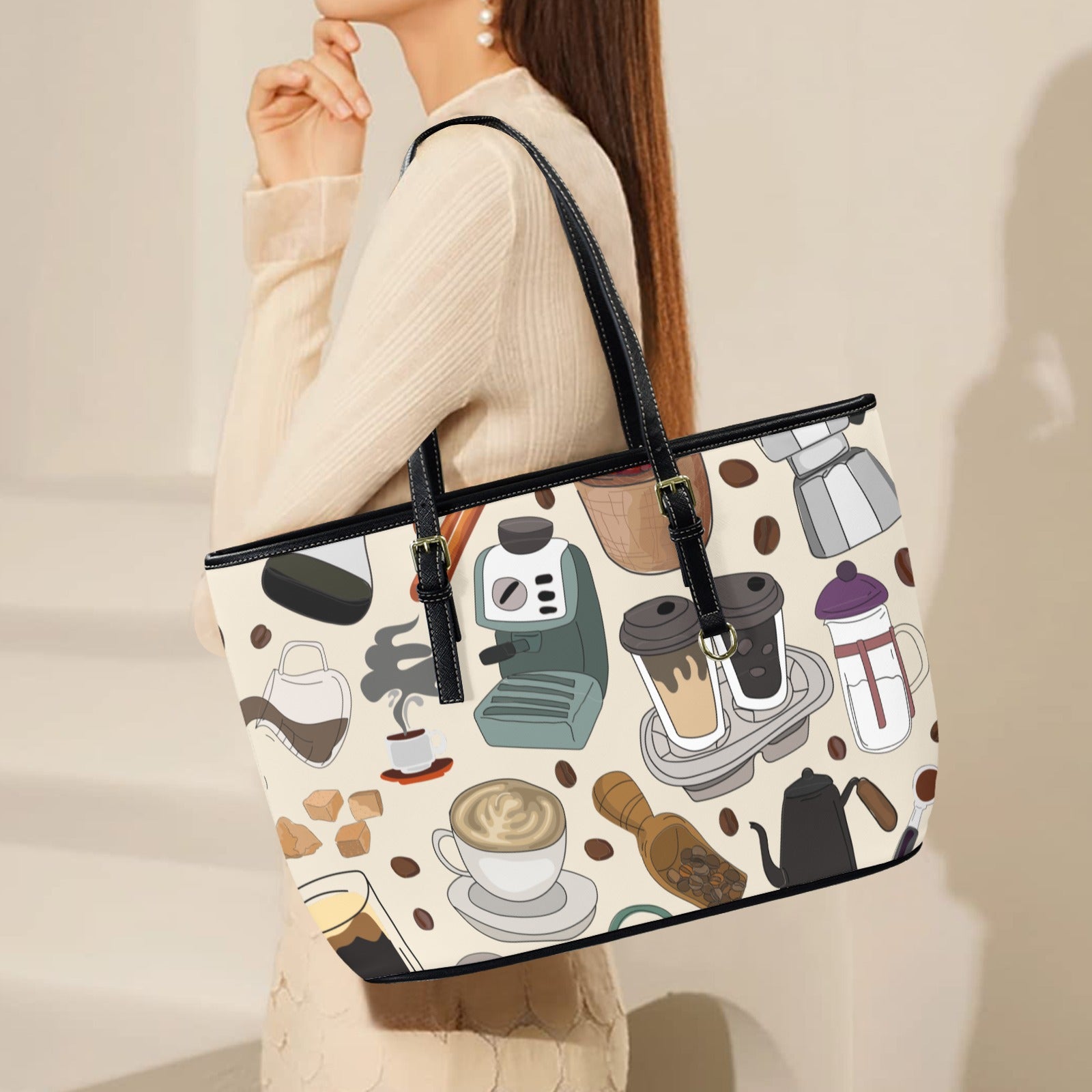 All The Coffee - Leather Tote Bag-Large