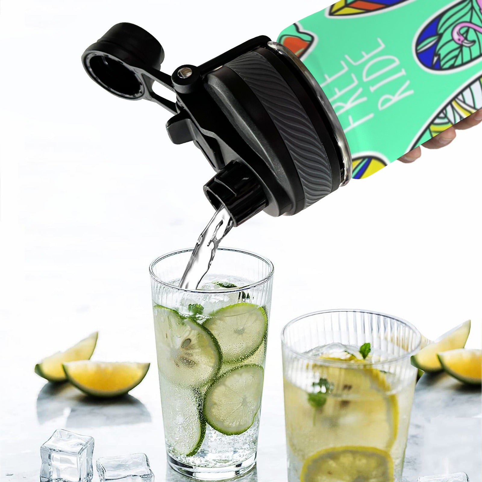 With dual-use lid and top handle, this water bottle can accompany you anywhere.