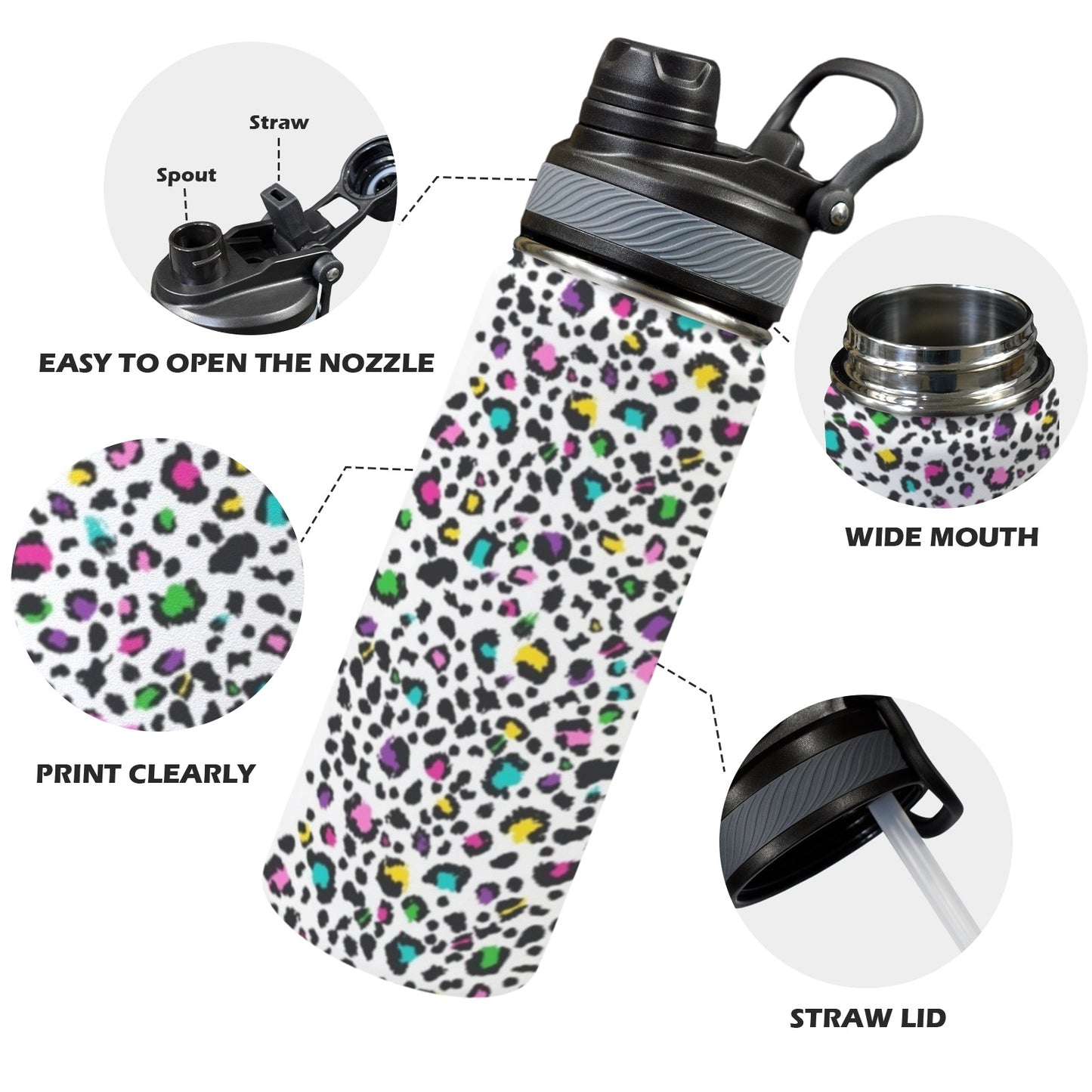 Animal Print In Colour - Insulated Water Bottle with Dual-Use Lid (18oz)