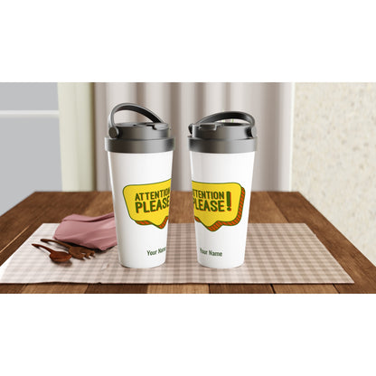 Personalised - Attention Please! - White 15oz Stainless Steel Travel Mug