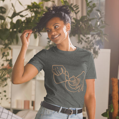 You've now found the staple t-shirt of your wardrobe. It's made of 100% ring-spun cotton and is soft and comfy. The double stitching on the neckline and sleeves add more durability to what is sure to be a favourite!