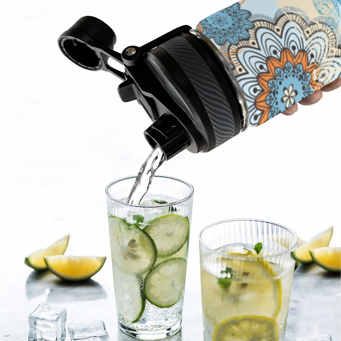 With dual-use lid and top handle, this water bottle can accompany you anywhere.