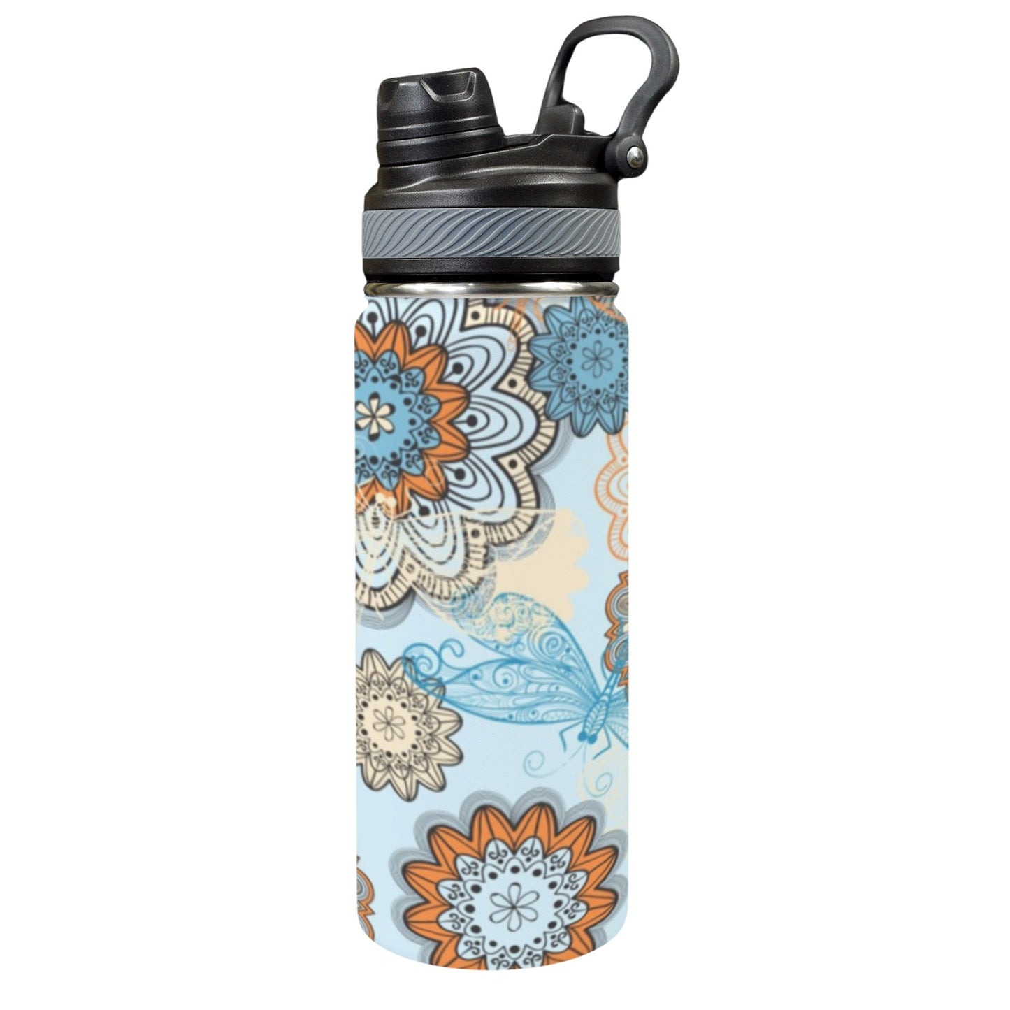 Blue Butterfly Flower - Insulated Water Bottle with Dual-Use Lid (18oz)