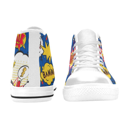 Blue Comic Book - Kids High Top Canvas Shoes