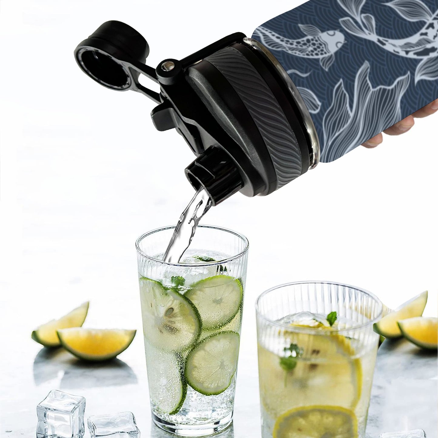 Blue Fish - Insulated Water Bottle with Dual-Use Lid (18oz)