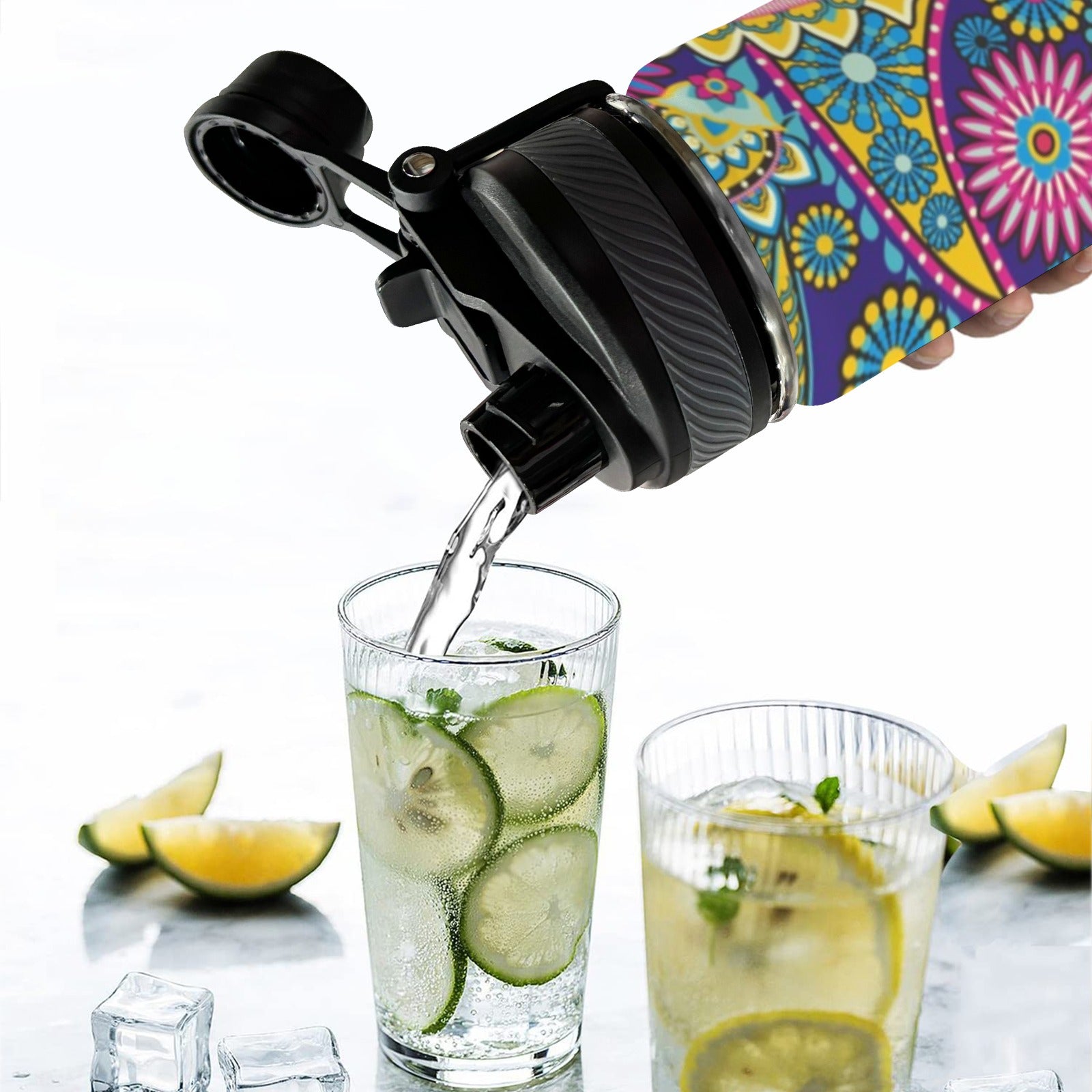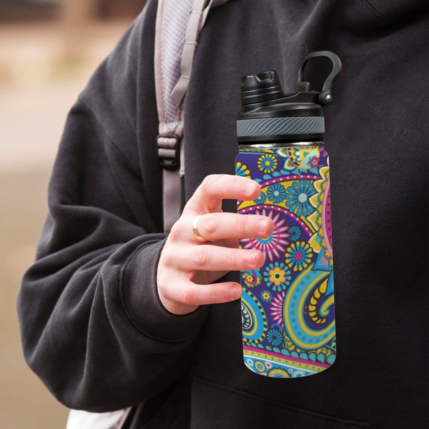 Blue Paisley - Insulated Water Bottle with Dual-Use Lid (18oz)