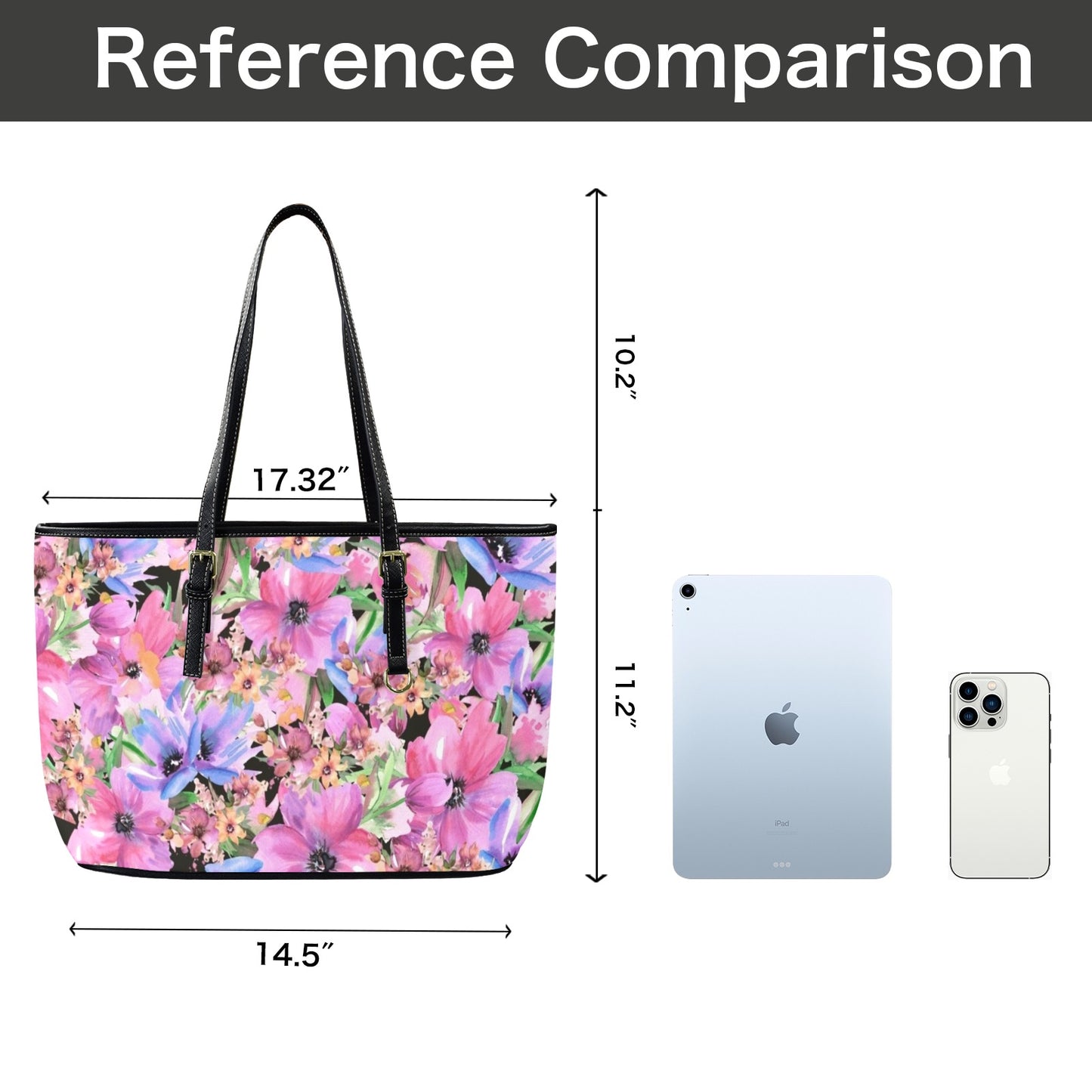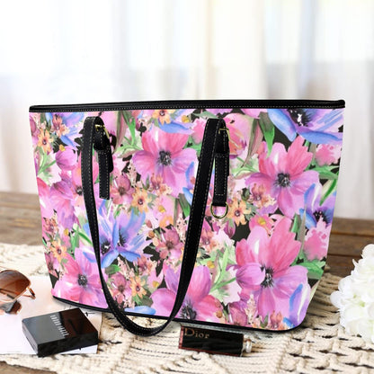 Bright Pink Floral - Leather Tote Bag-Large