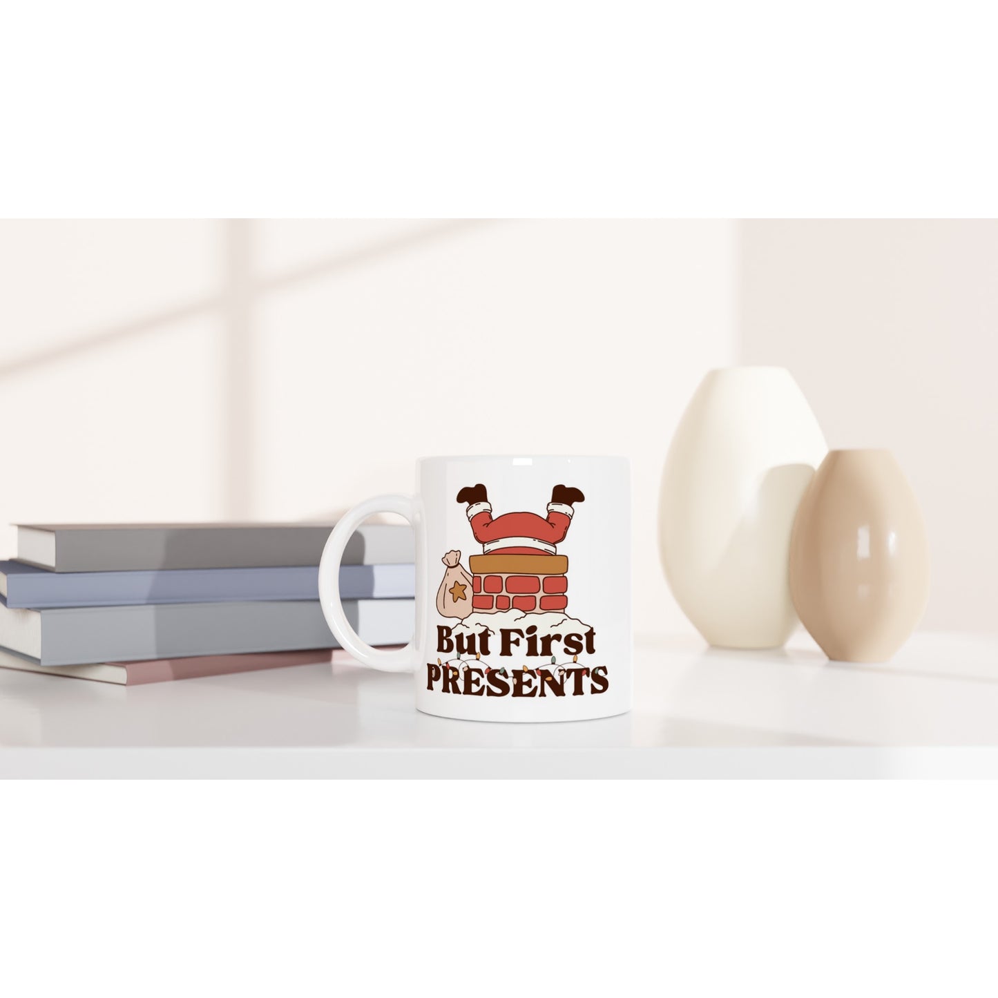 But First Presents, Santa In Chimney - White 11oz Ceramic Mug
