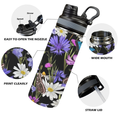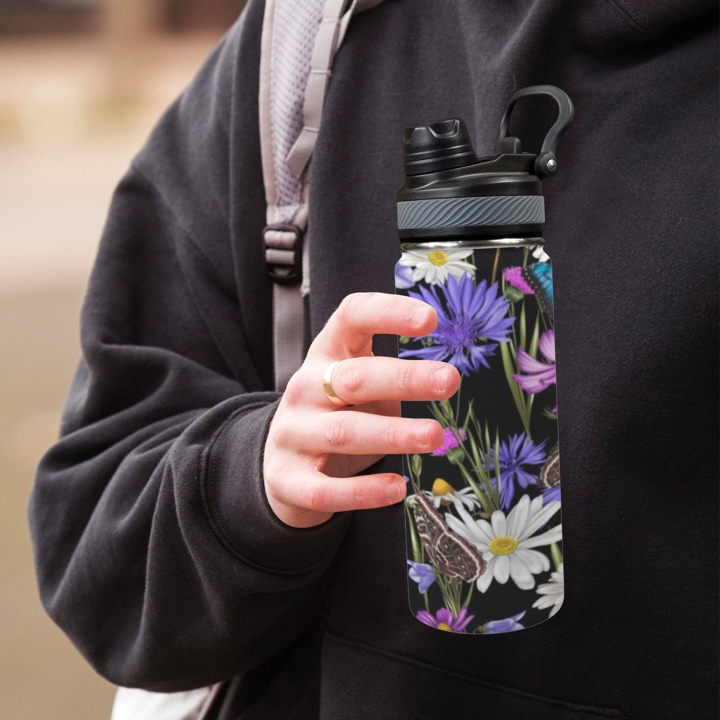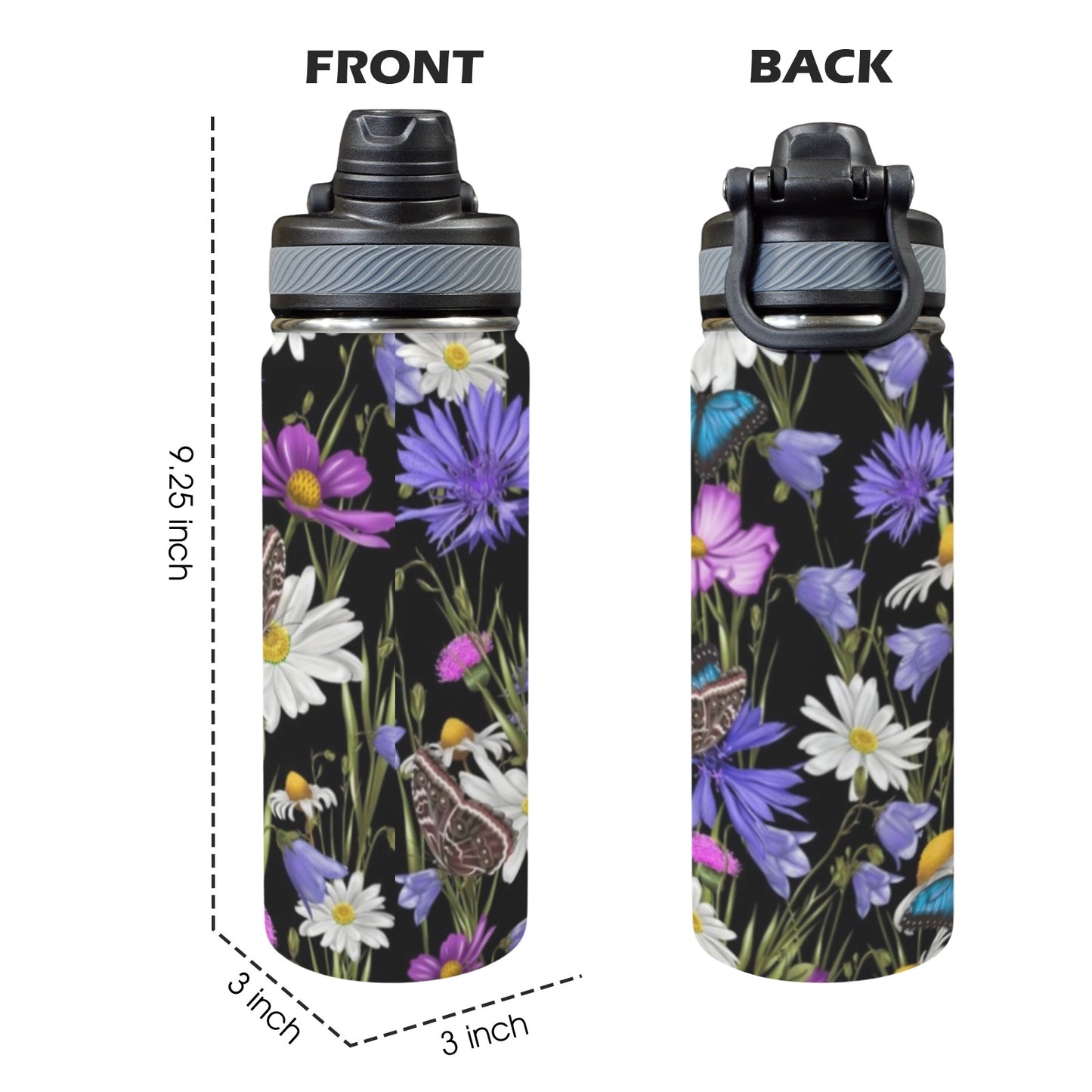 Butterfly Flowers - Insulated Water Bottle with Dual-Use Lid (18oz)