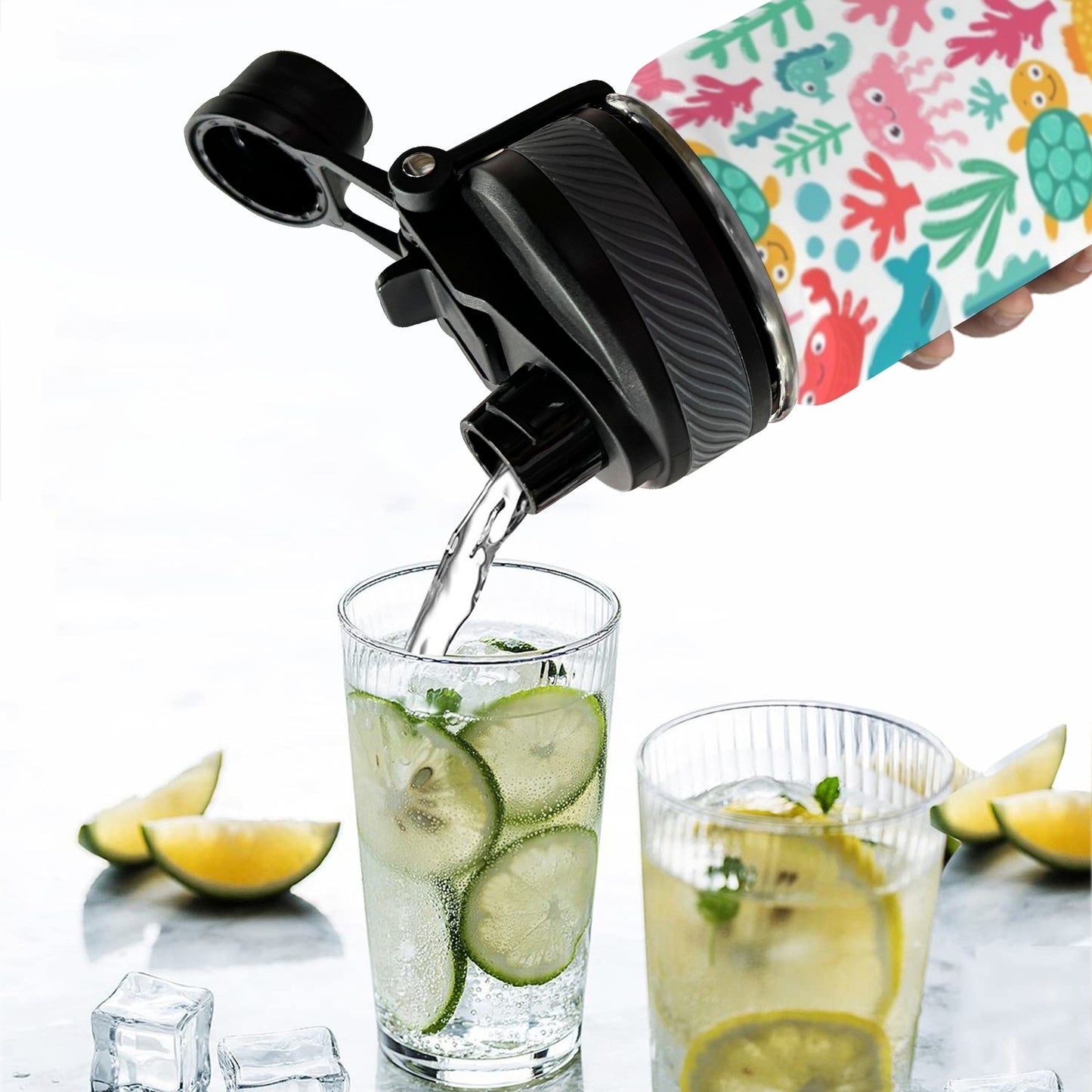 Cartoon Sea Creatures - Insulated Water Bottle with Dual-Use Lid (18oz)