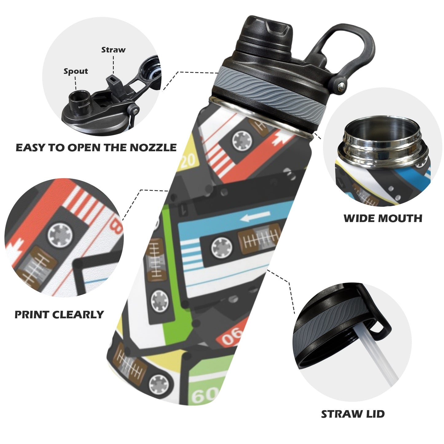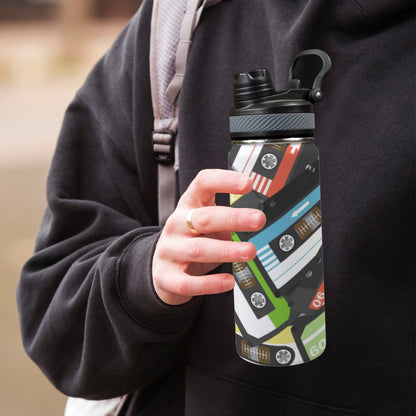 Cassette Tapes - Insulated Water Bottle with Dual-Use Lid (18oz)
