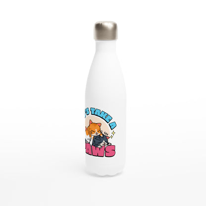 Cats, Let's Take A Paws - White 17oz Stainless Steel Water Bottle