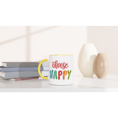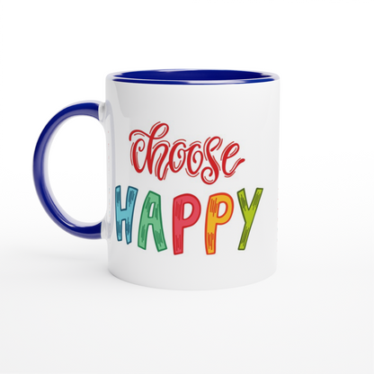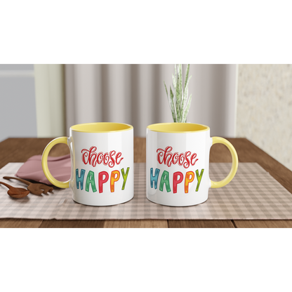 Choose Happy - White 11oz Ceramic Mug with Colour Inside