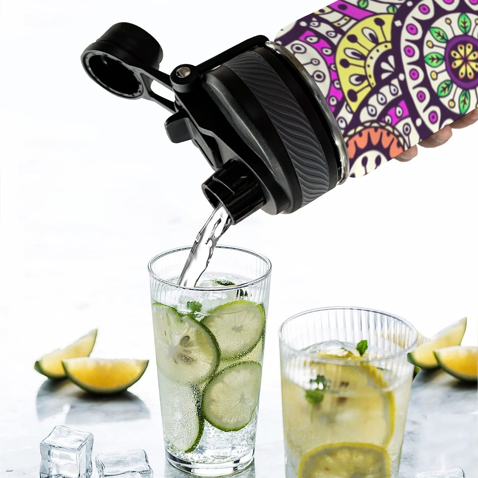 Circle Flowers - Insulated Water Bottle with Dual-Use Lid (18oz)