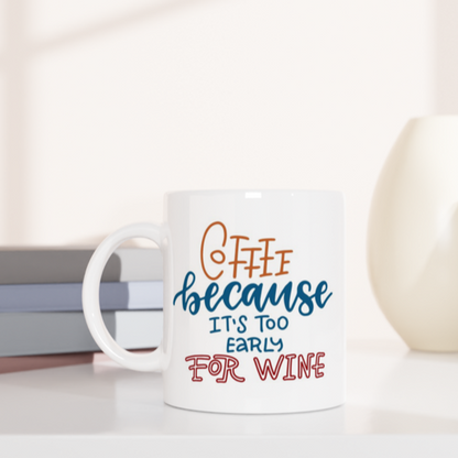 Coffee, Because It's Too Early For Wine - White 11oz Ceramic Mug