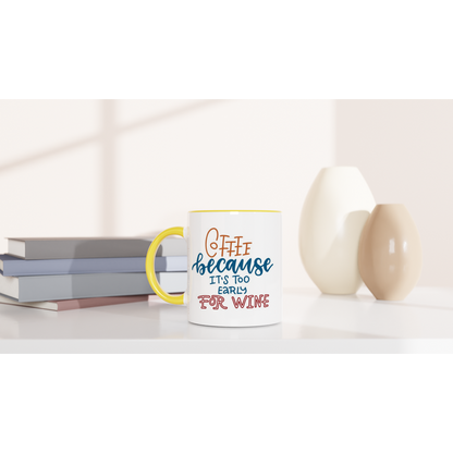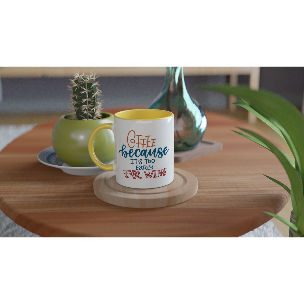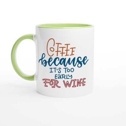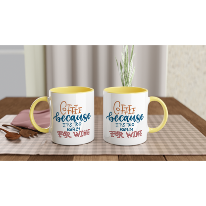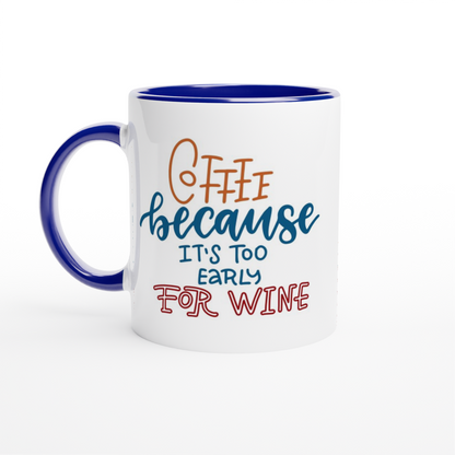 Coffee, Because It's Too Early For Wine - White 11oz Ceramic Mug with Colour Inside