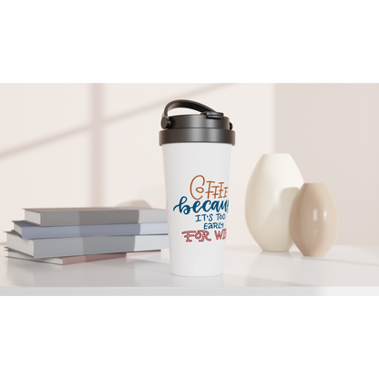 Coffee Because It's Too Early For Wine - White 15oz Stainless Steel Travel Mug