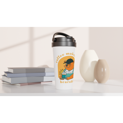 Coffee Makes Life Bearable - White 15oz Stainless Steel Travel Mug
