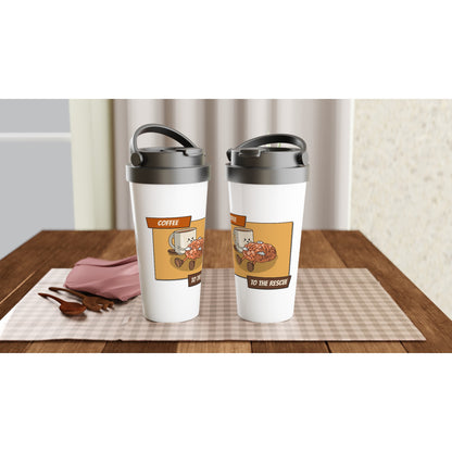 Coffee To The Rescue - White 15oz Stainless Steel Travel Mug