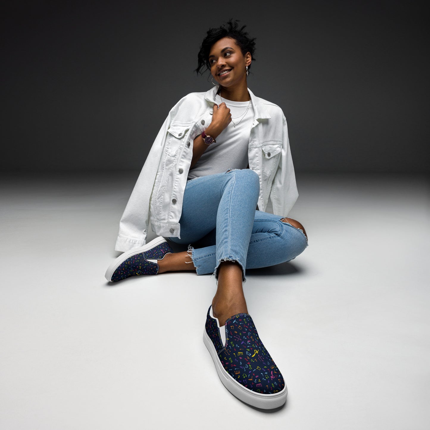 Colourful Music Notes - Women’s slip-on canvas shoes