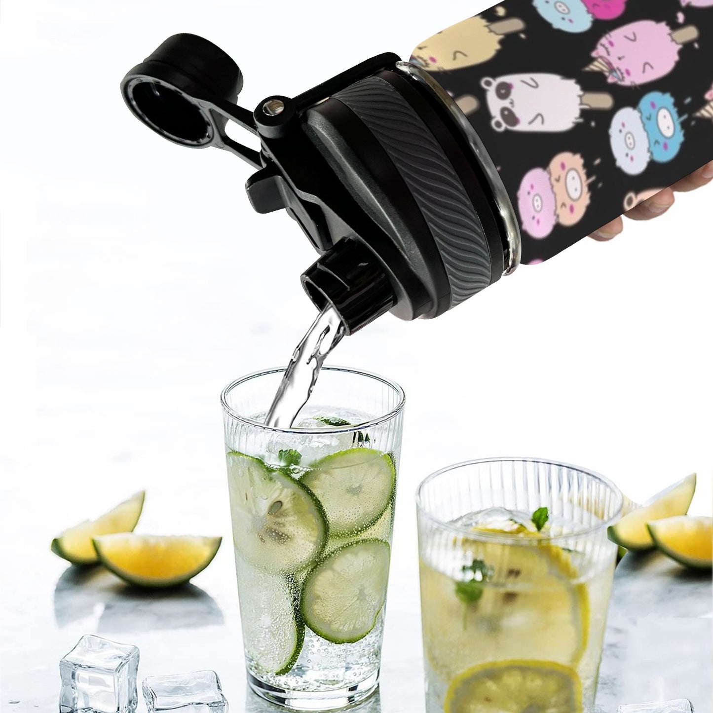 Cute Animal Ice Blocks - Insulated Water Bottle with Dual-Use Lid (18oz)