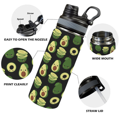Cute Avocados - Insulated Water Bottle with Dual-Use Lid (18oz)