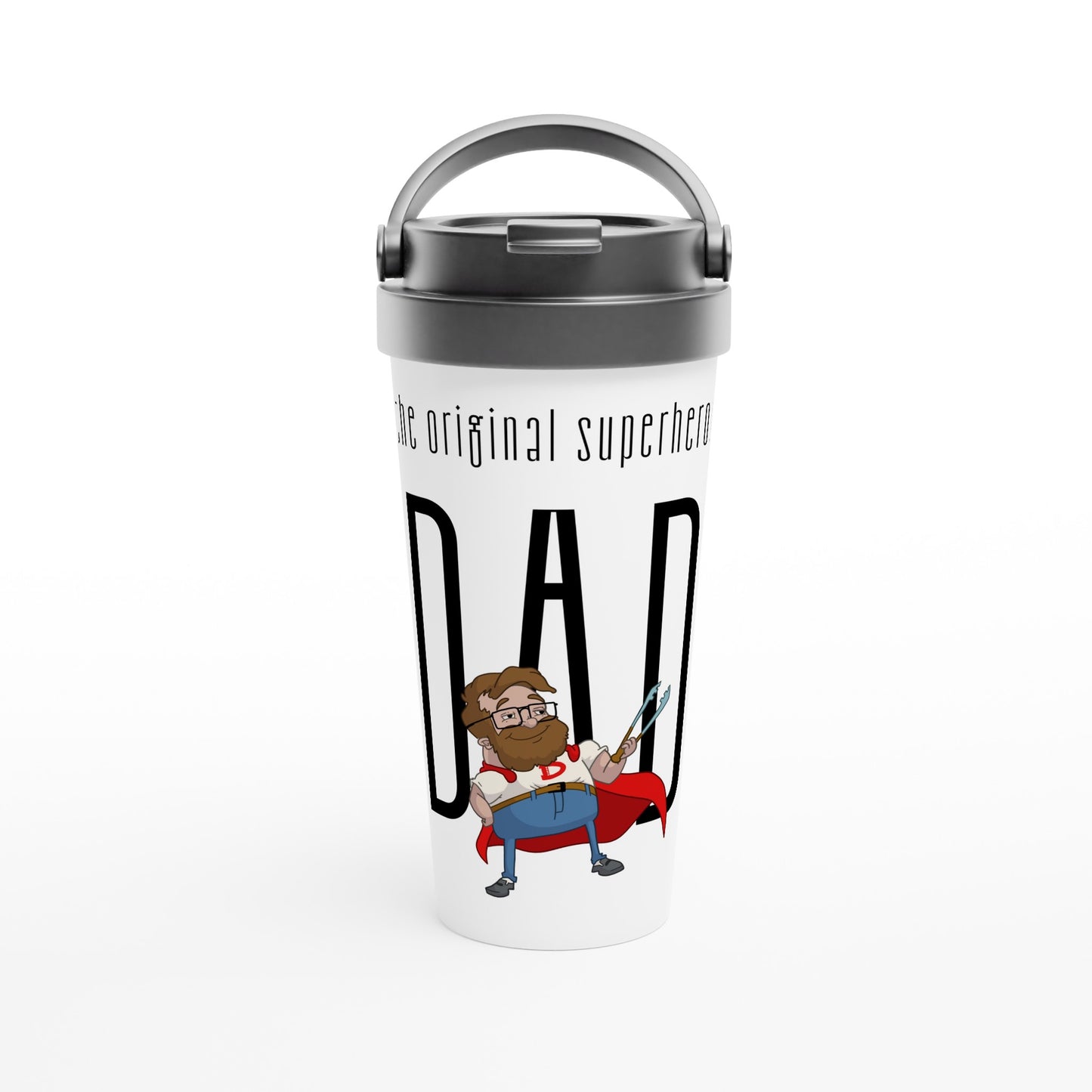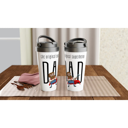 Dad, The Original Superhero - White 15oz Stainless Steel Travel Mug