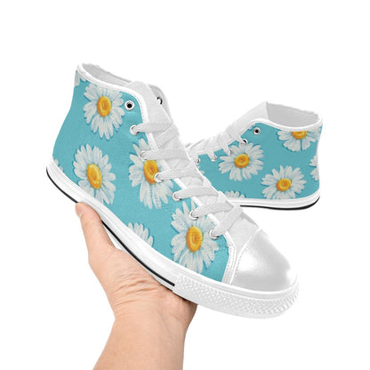 Daisy Floral On Blue - Women's High Top Canvas Shoes