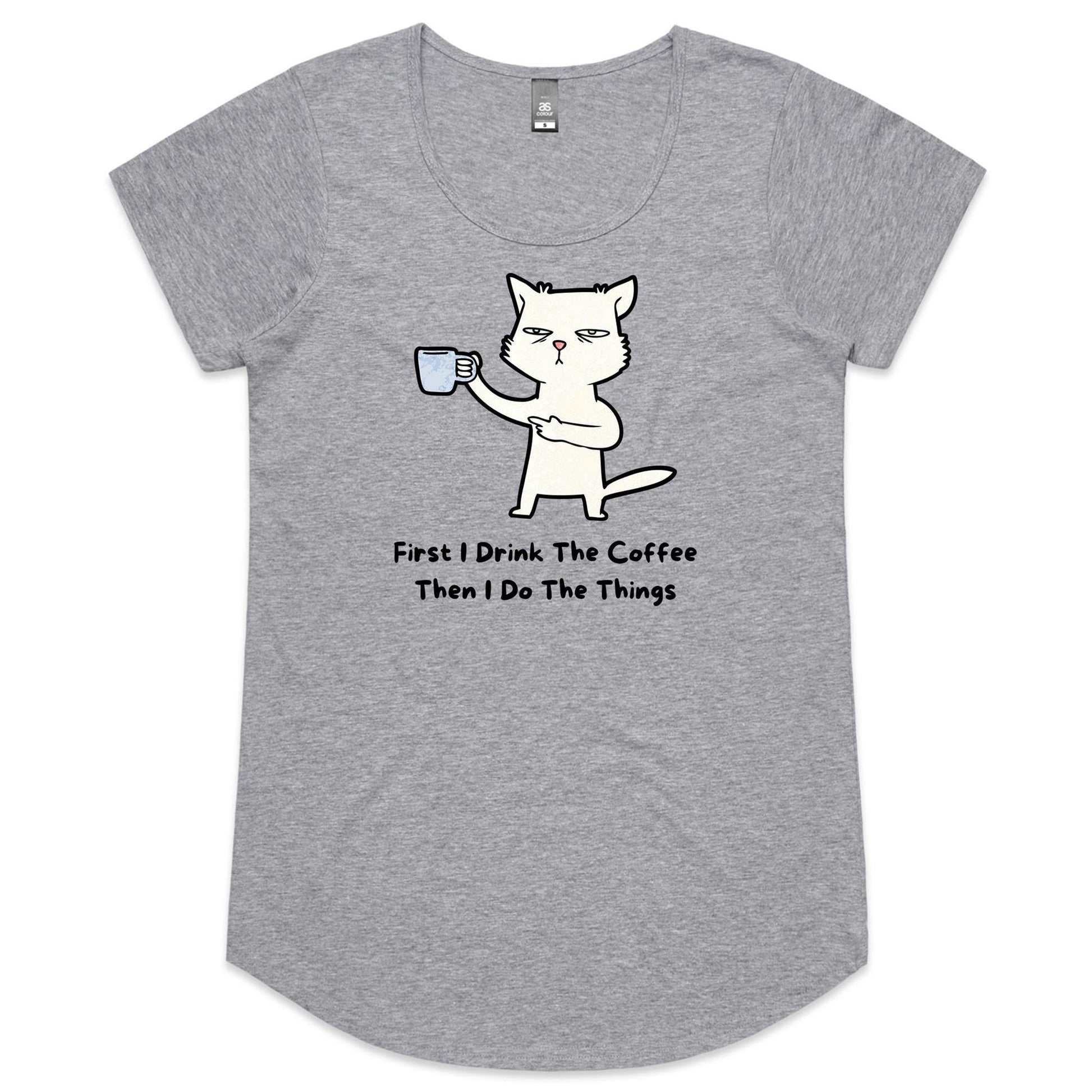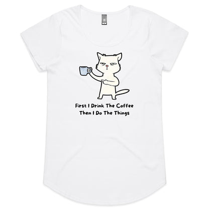 First I Drink The Coffee, Then I Do The Things, Cat - Womens Scoop Neck T-Shirt