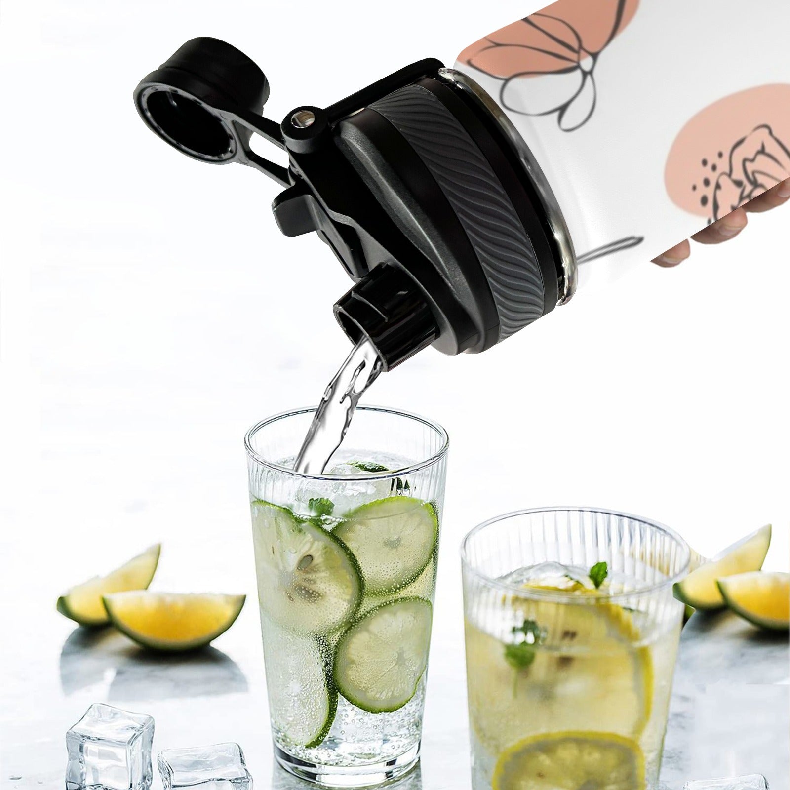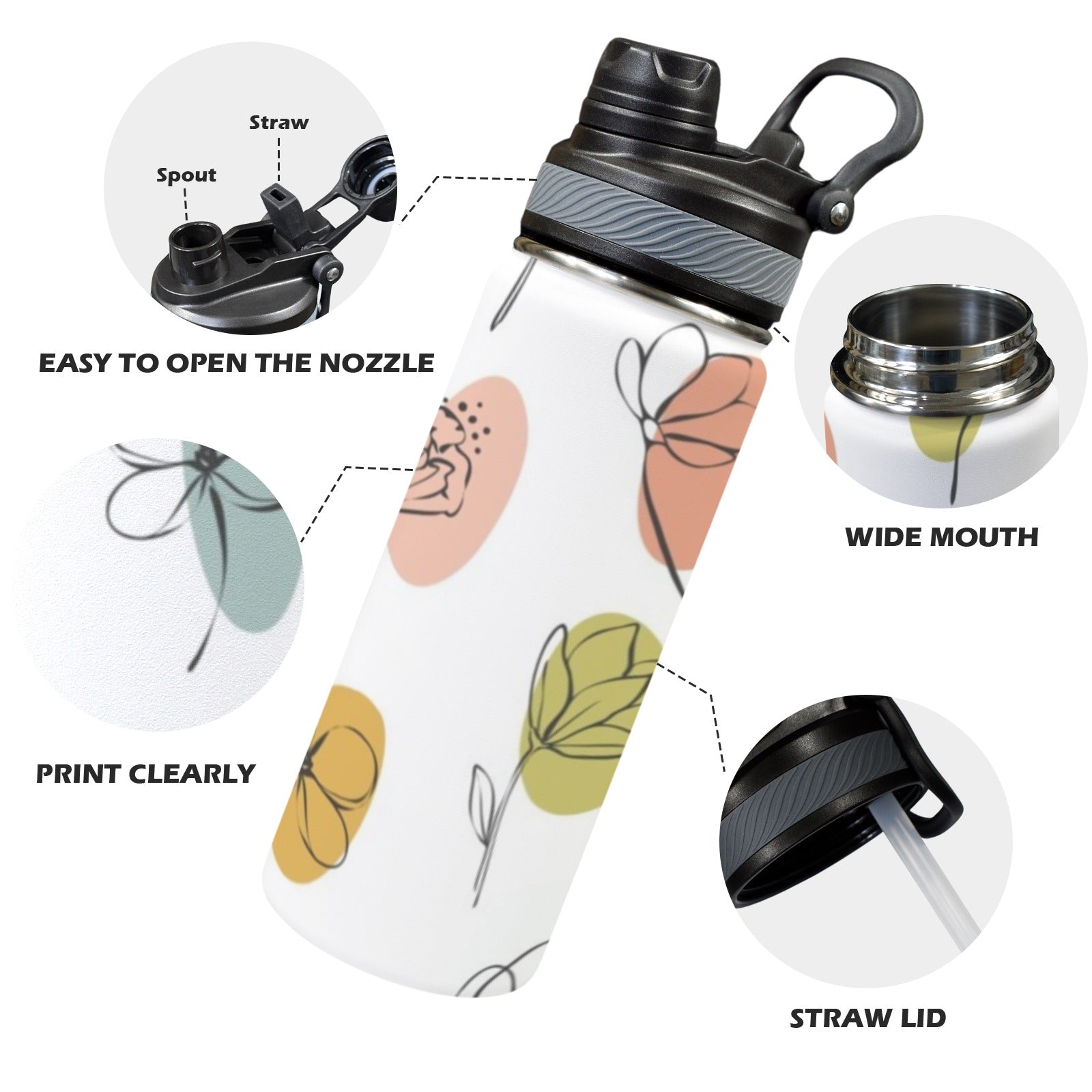 Flower Lines - Insulated Water Bottle with Dual-Use Lid (18oz)